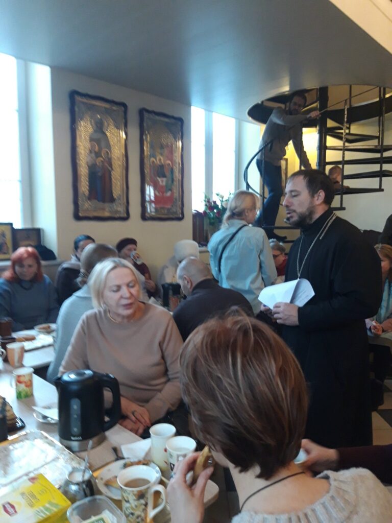 В воскресенье, 28 декабря, после Божественной литургии в нашем храме состоялось ежегодное приходское собрание. За накрытым столом собравшиеся подводили итоги уходящего года, обсуждали распределение обязанностей в разных сферах жизни прихода, радовались завершённым делам. Большой радостью стало и то, что в течение года несколько раз удалось выбраться в Рагуву – в храм Рождества Богородицы. Общими трудами храм приводился в порядок и совершались богослужения, в том числе с митрополитом Виленским и Литовским Иннокентием.